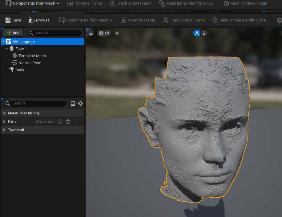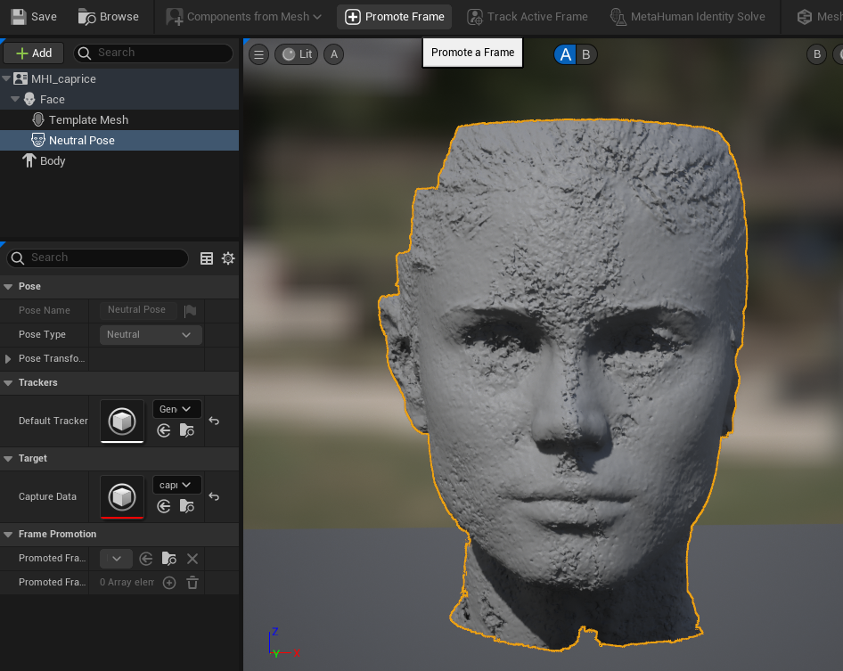 Press the ‘MetaHuman Identity Solve’ button at the top, right next to the ‘Promote Frame’ button