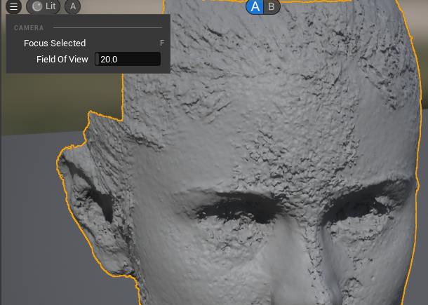 To the right of that You’ll see 'A|B' buttons – this is what you’ll use to compare the scan between the head we get from Metahuman.