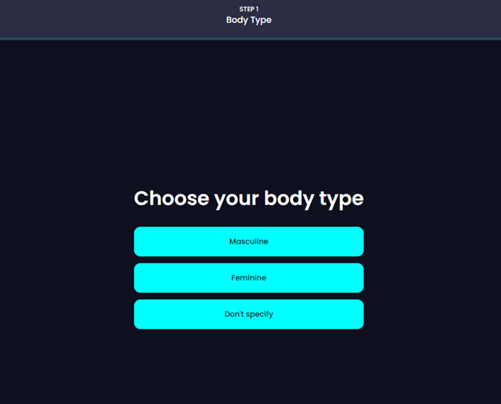 Sign up and create one. After you’ve registered, it will confirm via your email account then switch you back to the website to ask what kind of body type.